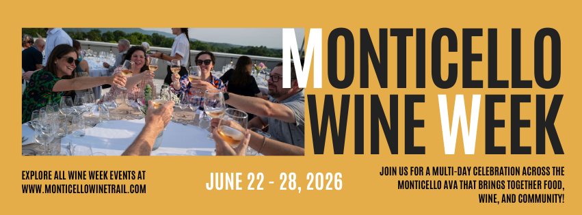 Save the Date for Monticello Wine Week - June 25th - 28th, 2026. More details on events and timeline to come soon!